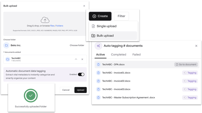 - Seamless Bulk Upload - Migrate thousands of contracts in just a few clicks.